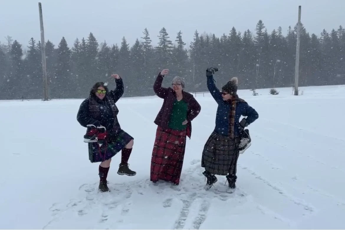 The event organizer, Angela McDonell, reported, “Kilt Skate moments were had despite yet another nasty weather system. A few of us just couldn’t wait any longer. Ice was great and the snow was blowing sideways. A hearty bunch of Scottish descendants here on PEI!”