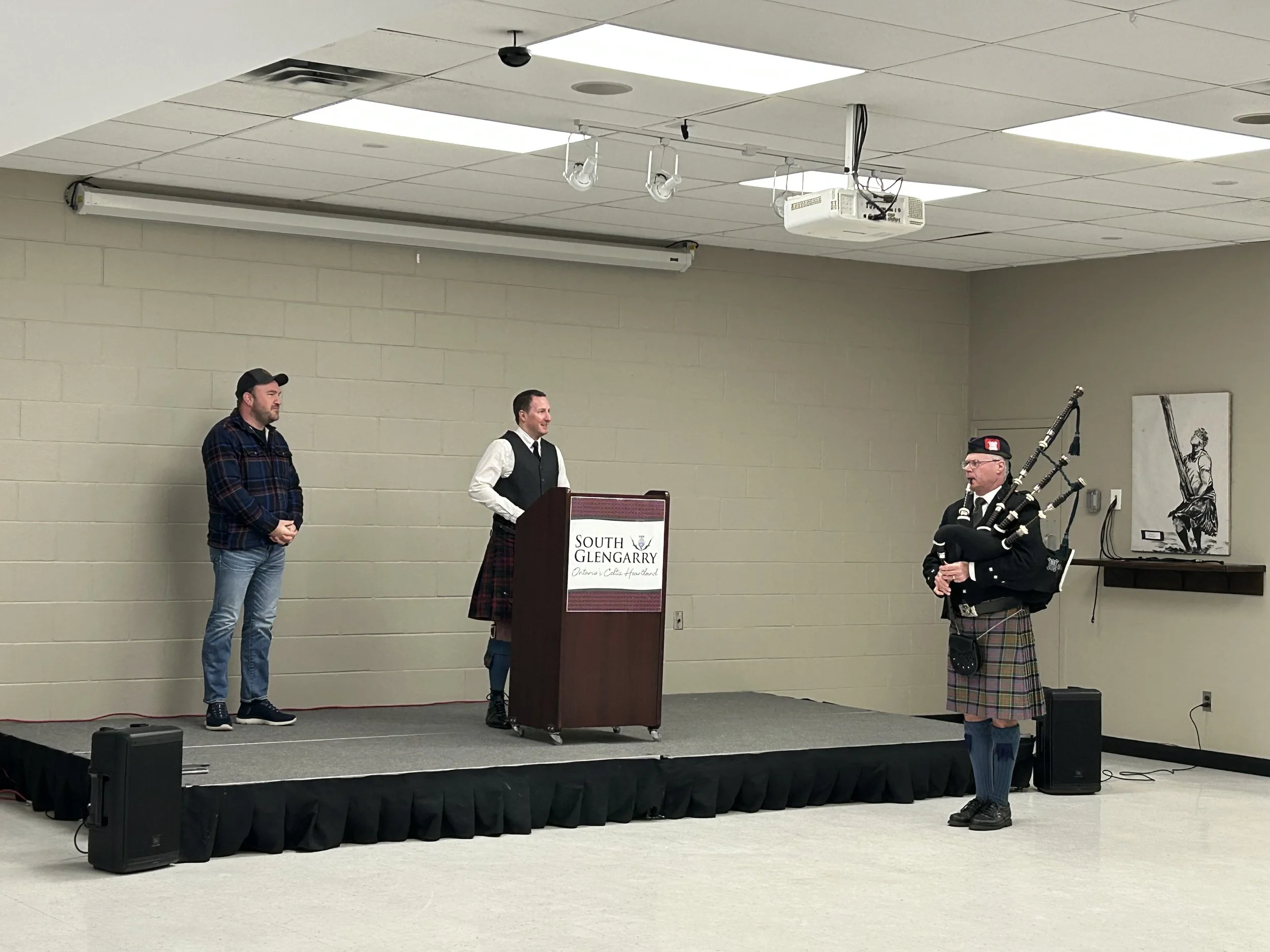 The opening ceremonies included Mayor Lachlan McDonald and Member of Parliament Eric Duncan. A piper from the South Glengarry Pipes and Drums piped in the dignitaries, and the band was on hand to entertain the skaters as they circled the arena.