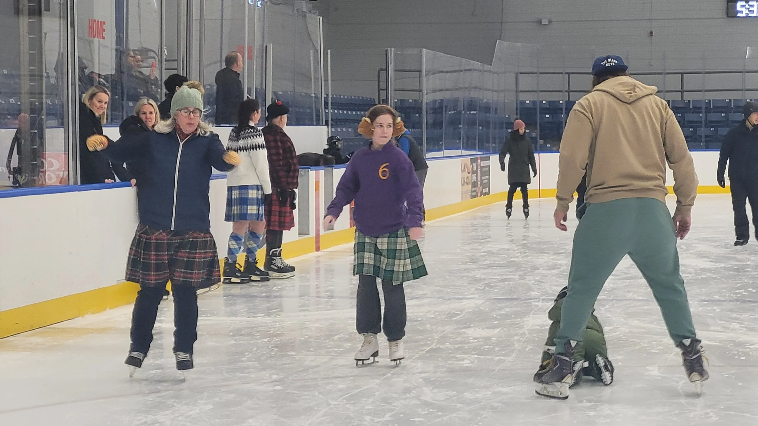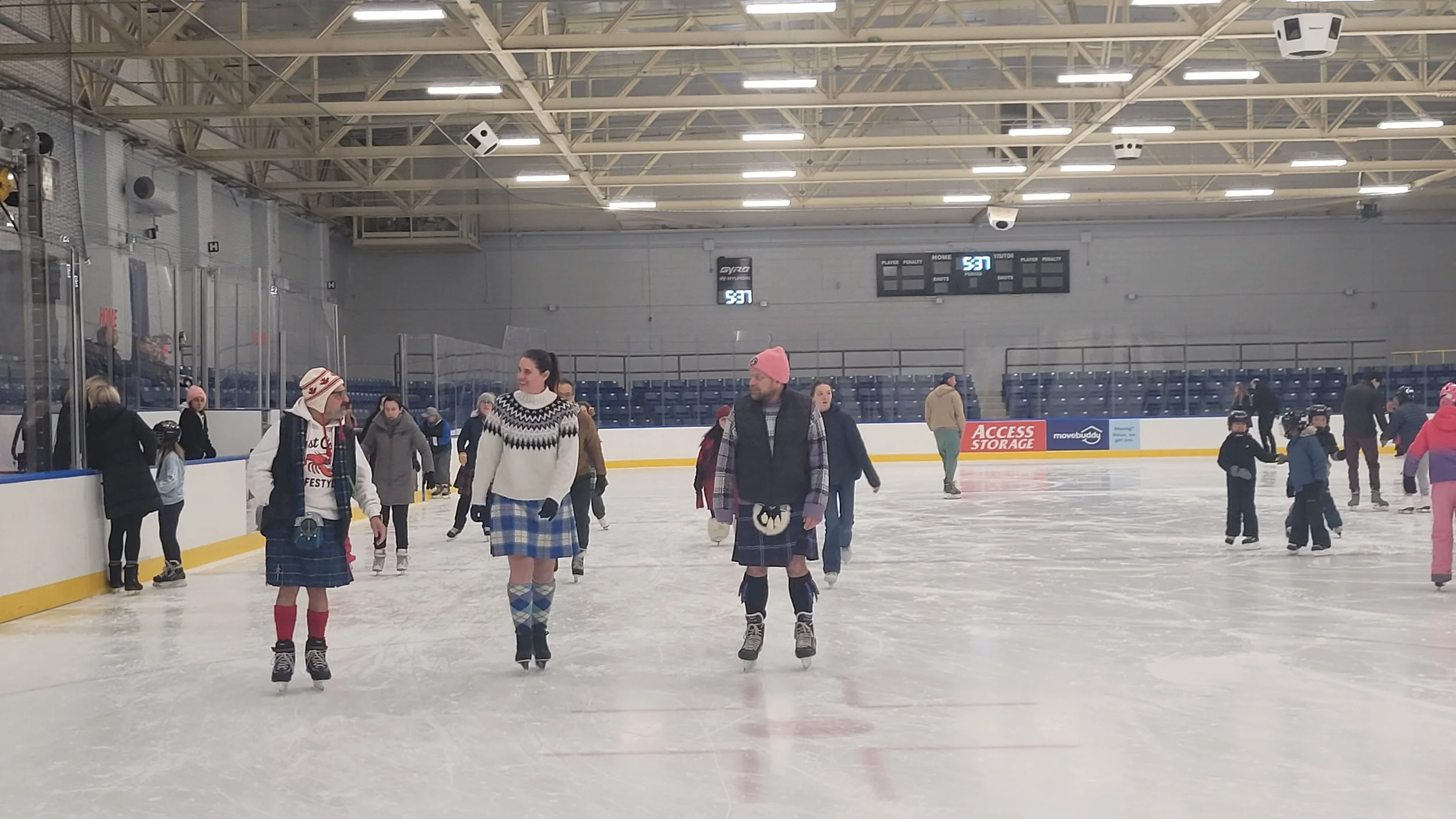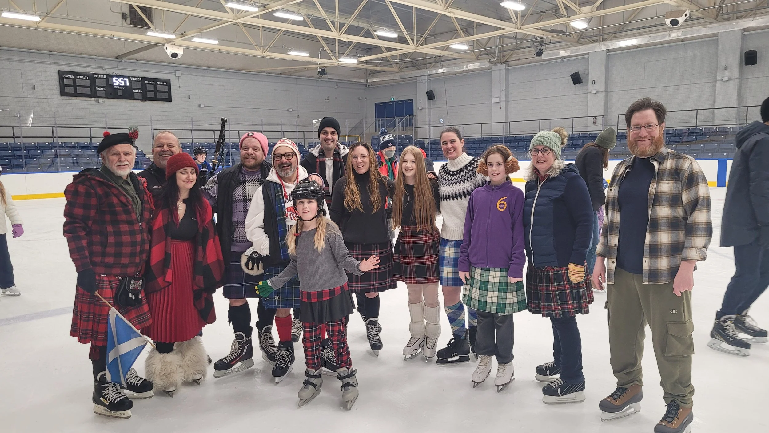 /Over the years, Toronto’s version of the Great Canadian Kilt Skate has been held in a variety of locations — from the City Hall ice down by the Henry Moore, to the ice pathways at the Evergreen Brick Works. This year, an enthusiastic skating party assembled at the Leaside Memorial Community Gardens.