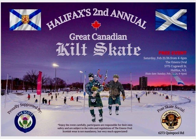 Be part of Halifax’s second annual Great Canadian Kilt Skate — in conjunction with the second annual International Kilt Skate Weekend. Celebrate with bare knees and ice Scotland’s contribution to Canada’s multicultural mosaic. Exercise while highlighting our rich Scottish heritage. It’s a free event. Kilts and tartans are not mandatory but are much appreciated.